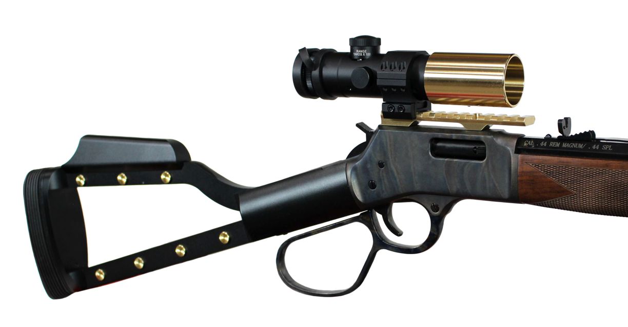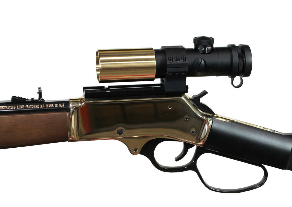 - Brass parts shown on scope are solid brass - and being so are not an exact match for the Henry brass receivers. Tarnish proof.